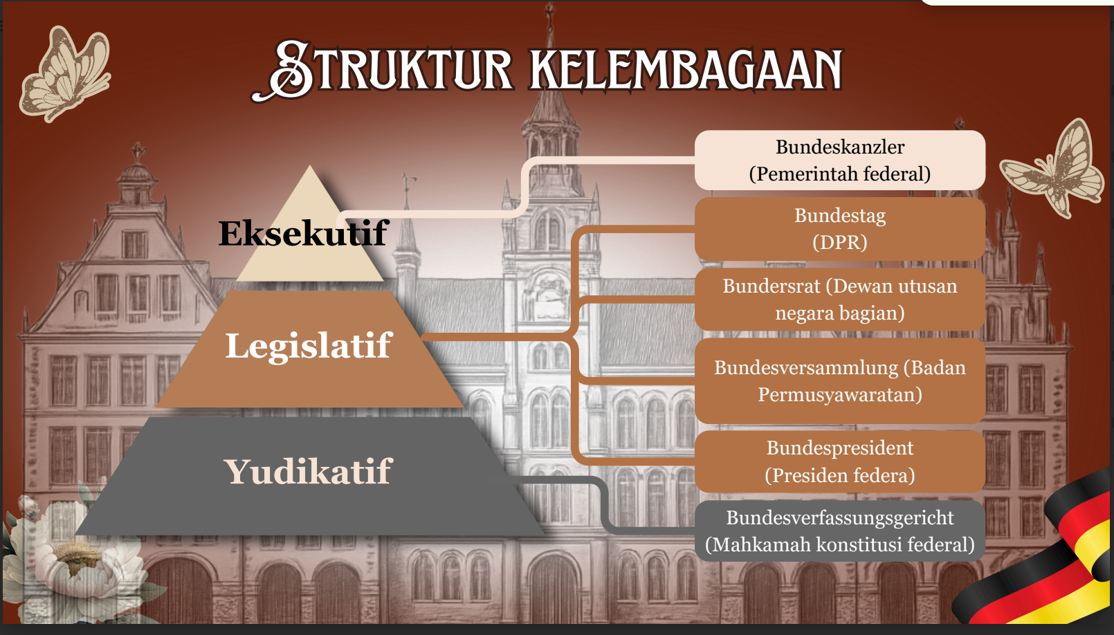 Infografis “Struktur Kelembagaan” di atas menampilkan susunan pemerintahan
