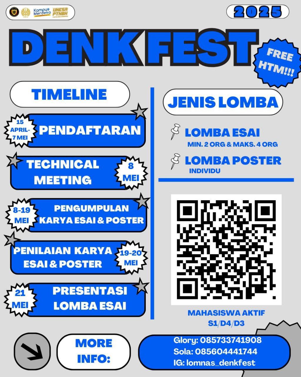 Halo pelajar Indonesia! Yuk ikutan DENK FEST 2025 – ajang seru buat kamu Mahasiswa S1 yang hobi nulis atau desain! Lombanya apa aja?