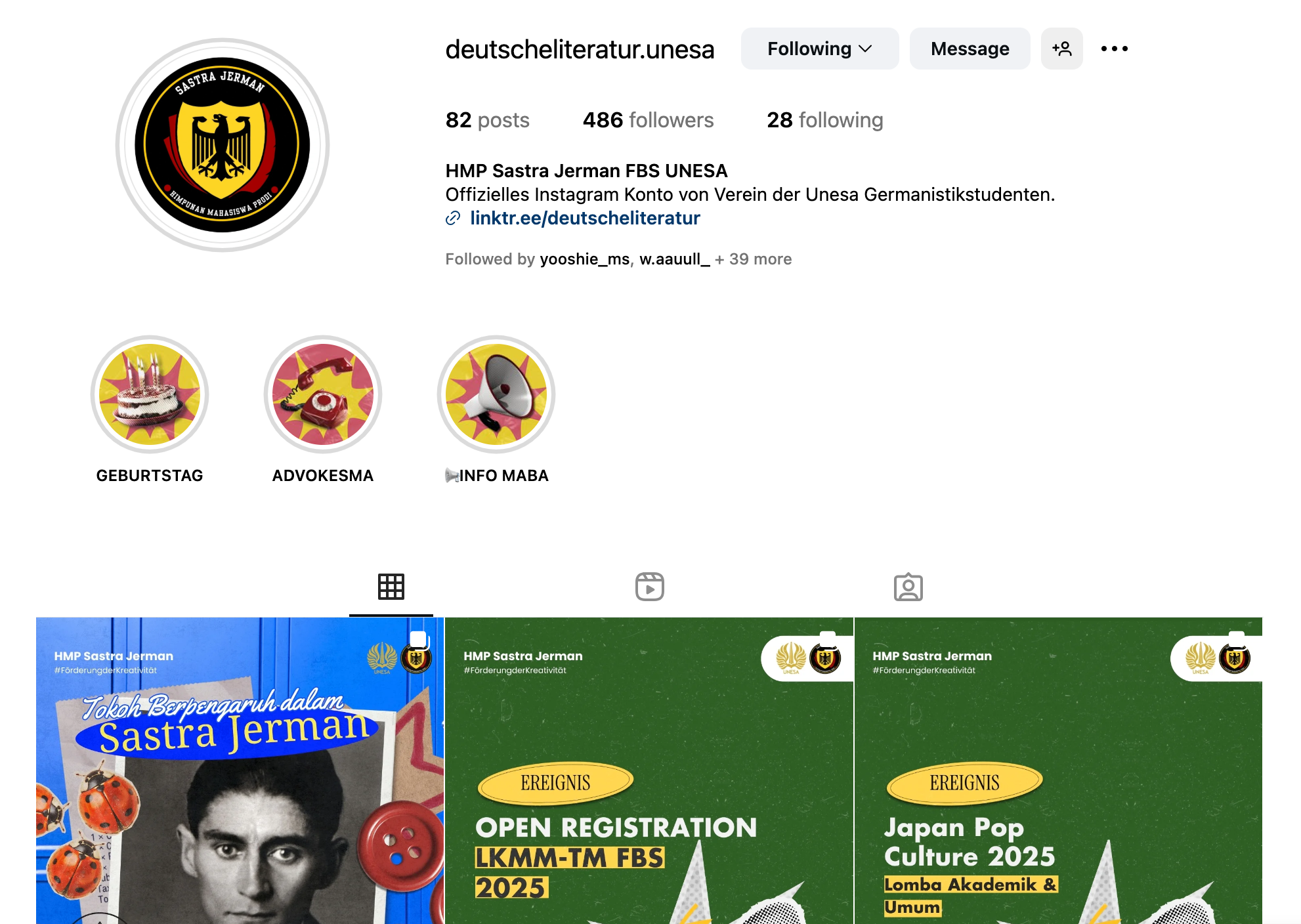 Melalui akun resmi Instagram: @deutscheliteratur.unesa